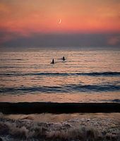 Lassen Sie sich von der Ruhe eines bezaubernden Sonnenuntergangs über einem ruhigen Ozean verzaubern, wo zwei Surfer still den Moment genießen. Die sanften Orange-, Rosa- und Violetttöne verschmelzen nahtlos miteinander und schaffen eine traumhafte Atmosphäre, die Ihrem Interieur sofort Wärme verleiht. Dieses Foto strahlt pure…