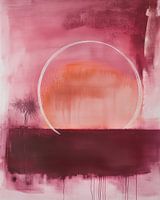 Dieses Bild fängt einen stillen Moment ein, in dem Natur und Licht sanft ineinanderfließen, genau an der Grenze zwischen Tag und Abend. Im Mittelpunkt steht ein weißer Kreis, der aus mehreren dünnen, fast zitternden Linien besteht. Diese Schichtung verleiht der Form einen lebendigen und atmenden Charakter – als wäre der Kreis nicht…