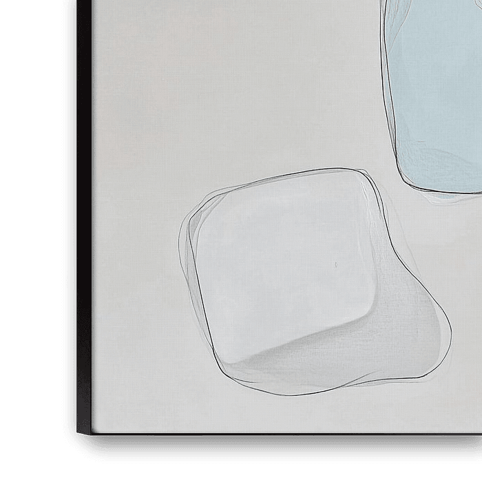 Durch die Schichtung der transparenten Formen entstehen subtile Schatten, die ein Gefühl von Tiefe erzeugen, ohne dass das Werk seinen minimalistischen Charakter verliert. Die luftige, fast schwerelose Qualität der Elemente verstärkt den beruhigenden Eindruck. Das Zusammenspiel von Linien und Farbflächen reicht gerade aus, um Spannung zu erzeugen, und lässt gleichzeitig viel Spielraum für Interpretationen.