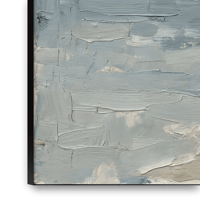 Weiche Oberflächen und sanfte Übergänge schaffen einen ruhigen Raum, in dem Licht und Bewegung aufeinandertreffen. Die geschichtete Textur und die sichtbaren Pinselstriche verleihen dem Werk eine greifbare, fast meditative Qualität.