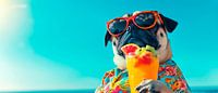 Ein entspannter Hund im bunten Hawaii-Hemd genießt einen fruchtigen Cocktail unter strahlend blauem Himmel. Die Sonnenbrille auf seiner Schnauze verleiht ihm einen Hauch von Coolness und Urlaubsfeeling. Dieses fröhliche Motiv zaubert lebendige Farben und gute Laune in jedes Wohnzimmer und macht jeden Tag ein Stückchen sonniger.