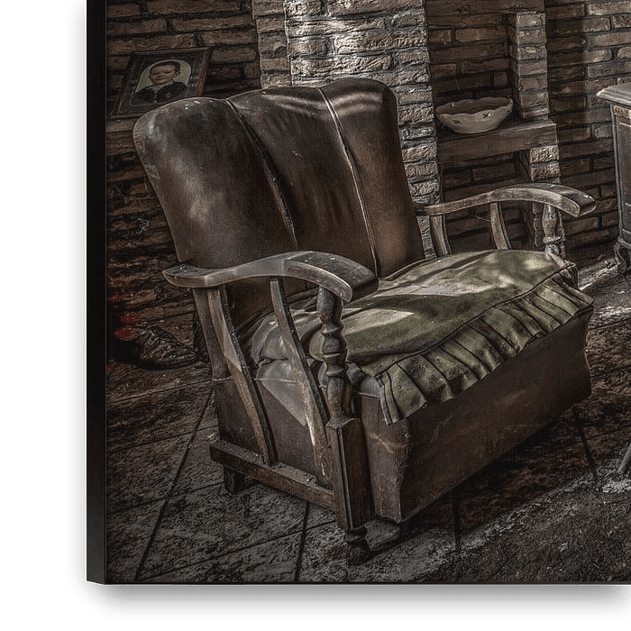 Bild des Wohnzimmers in einem verlassenen Bauernhaus irgendwo in Belgien. Innen. Urban Exploring. HDR-Aufnahme.