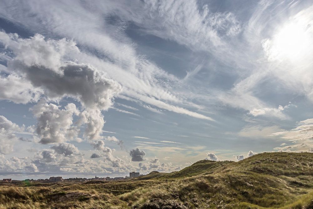 Prächtige Wolken in den Dünen in der Nähe des Strandes von Egmond aan Zee
