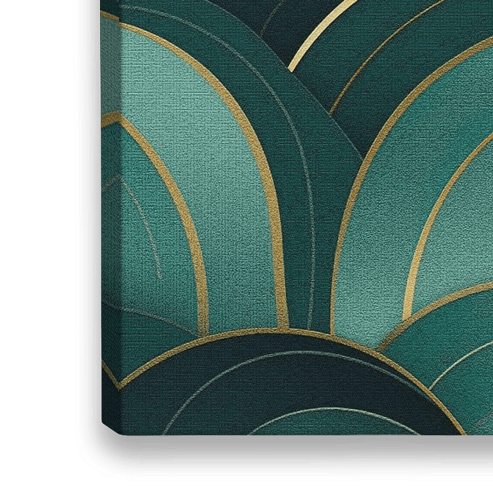 "Clouds in Turquoise and Gold" ist inspiriert von den Formen und der Farbpalette des Art Deco der 1920er Jahre. Das Stück verleiht Ihrem Interieur einen eleganten und klassischen Look!
