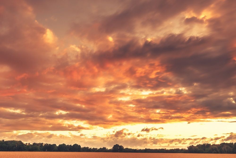 Dieses beeindruckende Wolkenbild bot sich mir während des Sonnenuntergangs über einem Getreidefeld.