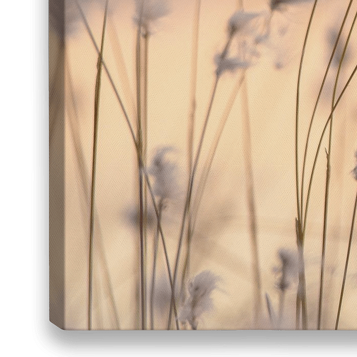 Sonnenuntergang im Moor kurz, vor Beginn der blauen Stunde, zeichnet die Natur durch ein besonderes Licht aus. Der Wind spielt mit den Gräsern und lässt den reifen Samen fliegen.