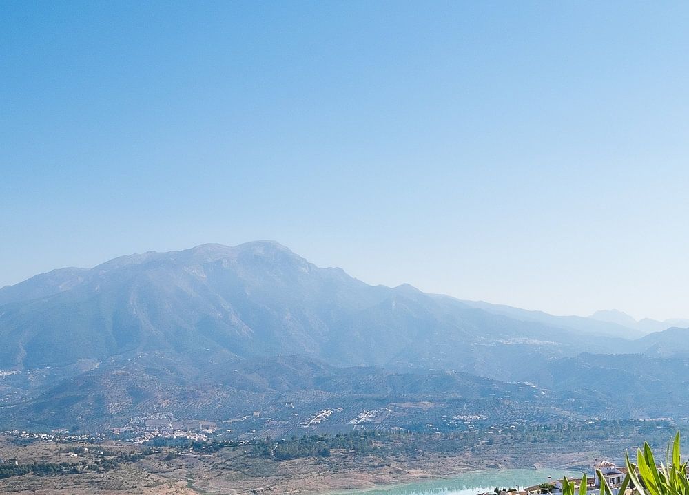 Der Viñuela-See liegt im Landesinneren von Andalusien, in der Axarquía (Provinz Málaga). Wegen der Trockenheit ist der Stausee nur noch sehr wenig Wasser, aber das macht die Landschaft nicht weniger schön. Dieses Foto wurde an einem warmen Tag im Oktober aufgenommen, etwas später am Morgen. Die längeren Schatten verraten die Jahreszeit. Ich finde dieses Foto der spanischen Landschaft magisch schön. Die Ruhe, das Mittelmeer, die Schönheit der Natur, ich kann darin völlig versinken.