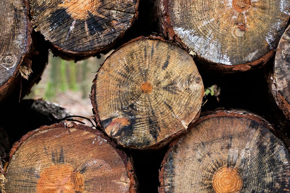 Bei einem Waldspaziergang ging ich an einem Holzstapel vorbei. Mein Blick fiel auf die schönen Muster und Farben. Ein Bonus war der kleine Blick in den Wald.