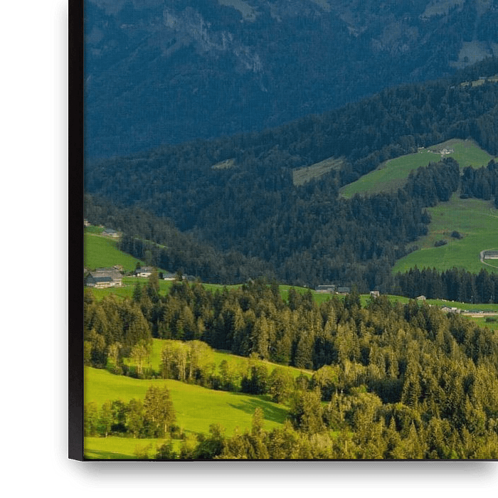 Bestelle dieses Landschafts-Wandbild Wunderschönes Alpenpanorama in Vorarlberg von Oliver Hlavaty als Reproduktion auf Leinwand, Alu-Dibond, als Poster, Fototapete oder Acrylglasbild.