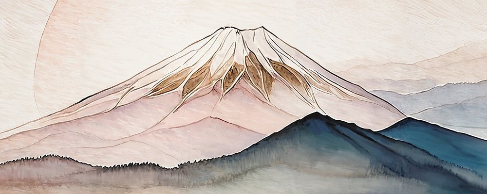 Japanische Landschaft: Berg Fuji mit "gemalt auf Wasserpapier" Effekt.