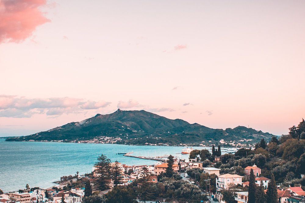 Wenn ich dieses Bild sehe, bekomme ich immer warme Erinnerungen an die Insel und die Stadt Zakynthos. Bei diesem Sonnenuntergang blicken wir vom Berg auf die Stadt hinunter, wo die Straßen vor Gemütlichkeit und köstlichen Restaurants nur so wimmeln.