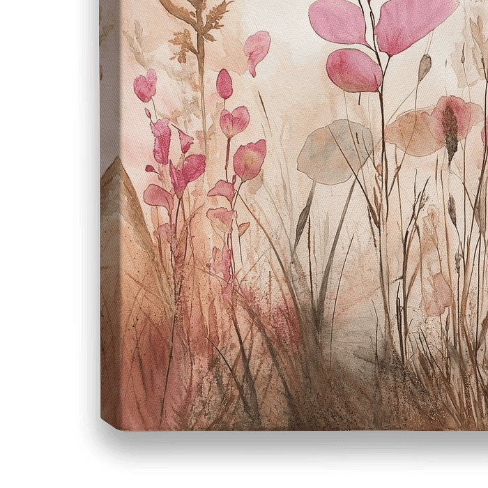 Bestelle dieses Landschafts-Wandbild Zarte Blumen und Gräser Aquarell von Art & Soul Creations als Reproduktion auf Leinwand, Alu-Dibond, als Poster, Fototapete oder Acrylglasbild.