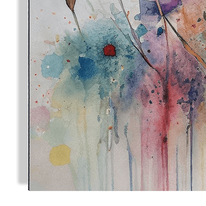 Aquarell eines schönen Blumenfeldes. Nasswassertechnik. Die Blüten breiten sich nach unten aus. Passend zu verschiedenen Trends und Stilen. Ein Blickfang für Ihre Wand.