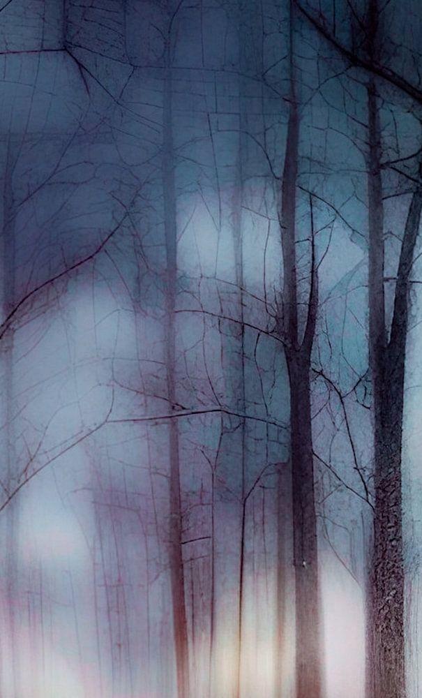 Magischer Wald mit schönen Blau- und Gelbtönen im Winter