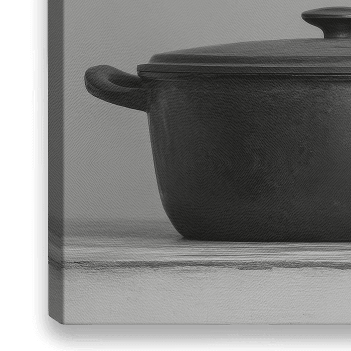 Ein faszinierendes Stillleben aus exotischem Flair: Eine stilisierte Zebrahaltung, die das Auge fesselt, kontrastiert mit einem eleganten Topf. Die monochrome Farbpalette sorgt für eine moderne Eleganz. Ideal für die Küche oder das Esszimmer, verleiht dieses Kunstwerk jeder Kochatmosphäre einen Hauch von Überraschung und Kreativität.