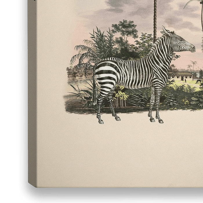 Bestelle dieses Landschafts-Wandbild Zebra im Tropenparadies von Andrea Haase als Reproduktion auf Leinwand, Alu-Dibond, als Poster, Fototapete oder Acrylglasbild.