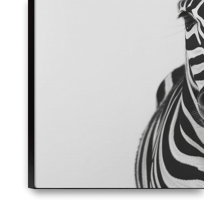 Bestelle dieses Porträt Zebra in Schwarz-Weiß von Poster Art Shop als Reproduktion auf Leinwand, Alu-Dibond, als Poster, Fototapete oder Acrylglasbild.