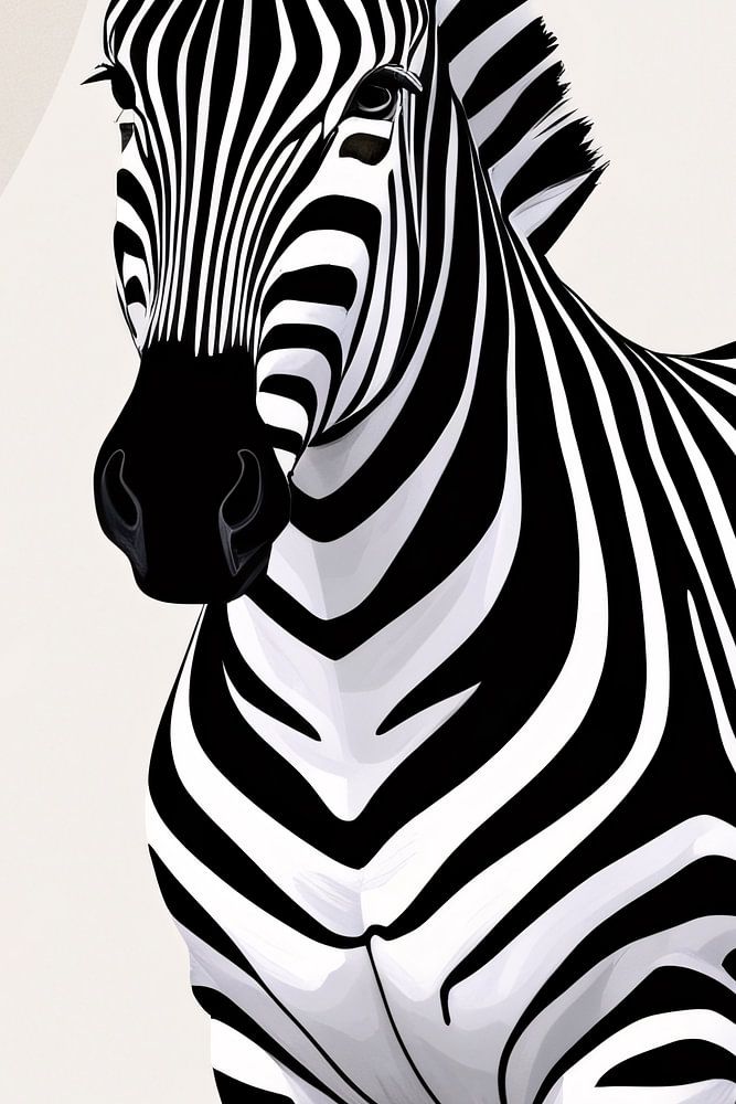 Dieses moderne Kunstwerk zeigt ein wunderschön stilisiertes Zebra inmitten von anmutigen Blättern und natürlichen Formen. Die auffälligen schwarzen und weißen Streifen des Zebras bilden einen schönen Kontrast zu den sanften Erdtönen des Motivs. Der Hintergrund besteht aus abstrakten Formen mit einem Holzmuster, das auf subtile Weise die Natur betont. Dieses Design eignet sich perfekt für eine ruhige und stilvolle Inneneinrichtung und verleiht jedem Raum einen Hauch von wilder Natur. Die minimalistische und monochrome Farbpalette macht es zu einer vielseitigen dekorativen Ergänzung, die gut in moderne Innenräume passt, insbesondere in ein Schlafzimmer oder ein Büro. Das Kunstwerk strahlt zeitlose Eleganz aus.