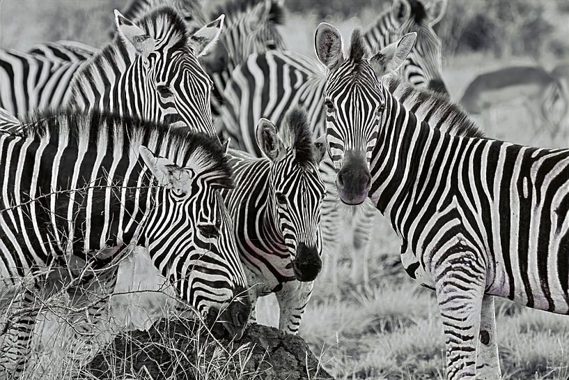 Bestelle das Foto Zebras Südafrika von nico weijers als Reproduktion auf Leinwand, Alu-Dibond, als Poster, Fototapete oder Acrylglasbild.