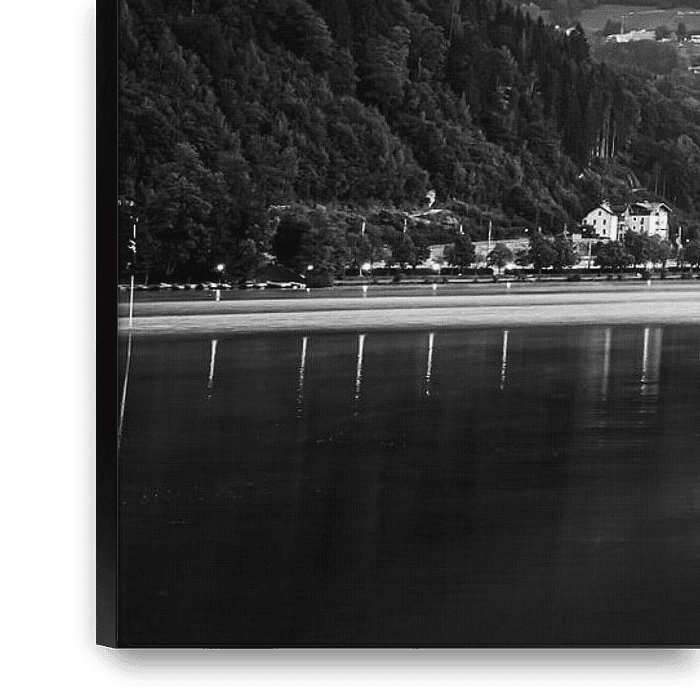 Ein Schwarz-Weiß-Foto von einem frühsommerlichen Sonnenaufgang in Zell am See. Die Stadt liegt am Zeller See, einem See in Zentralösterreich, der u.a. mit Kaprun und der Großglockner Hochalpenstraße verbunden ist.