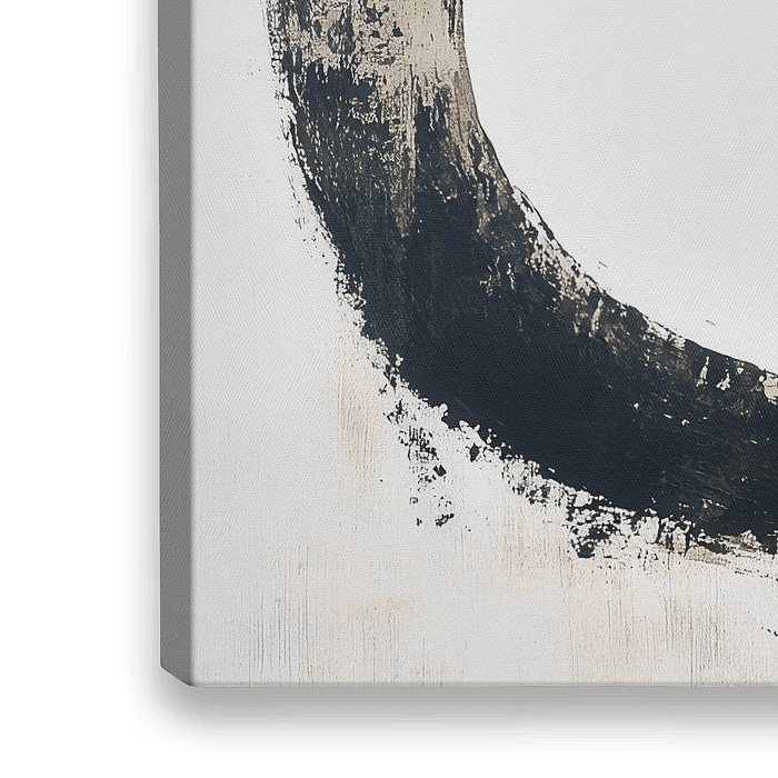 Dieses abstrakte Kunstwerk erweckt die Essenz von Gleichgewicht und Ruhe durch eine einzigartige Kombination aus handgemalten Zen-Enso-Kreisen und geometrischen Formen im japanischen Stil zum Leben. Die mit schwarzer Tinte gezeichneten Kreise, die auf einem strukturierten, cremefarbenen oder hellbeigen Hintergrund platziert sind, symbolisieren den Kreis des Lebens, der Harmonie und der Unendlichkeit. Diese klassischen Formen werden durch weiche geometrische Akzente in Erdtönen wie gedämpften Braun-, sanften Grau- und Sandtönen ergänzt. Zusammen schaffen sie ein subtiles visuelles Wechselspiel zwischen Chaos und Ordnung, das perfekt zu einer minimalistischen und zeitlosen Einrichtung passt. Ein Kunstwerk, das Gelassenheit und Raffinesse ausstrahlt und traditionelle und moderne Ästhetik miteinander verbindet.