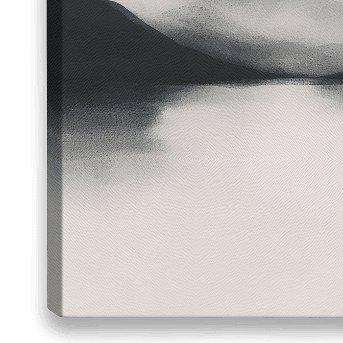 Eine ruhige und minimalistische Landschaft in sanften Aquarelltönen zeigt sanfte Hügel, die in einer nebligen Ferne verschwinden. Die ruhige Komposition und der subtile Einsatz von Farben machen dieses Werk perfekt für ein Interieur, das Ruhe und Klarheit ausstrahlen soll. Dieser Druck strahlt den japanischen Stil aus: eine harmonische…