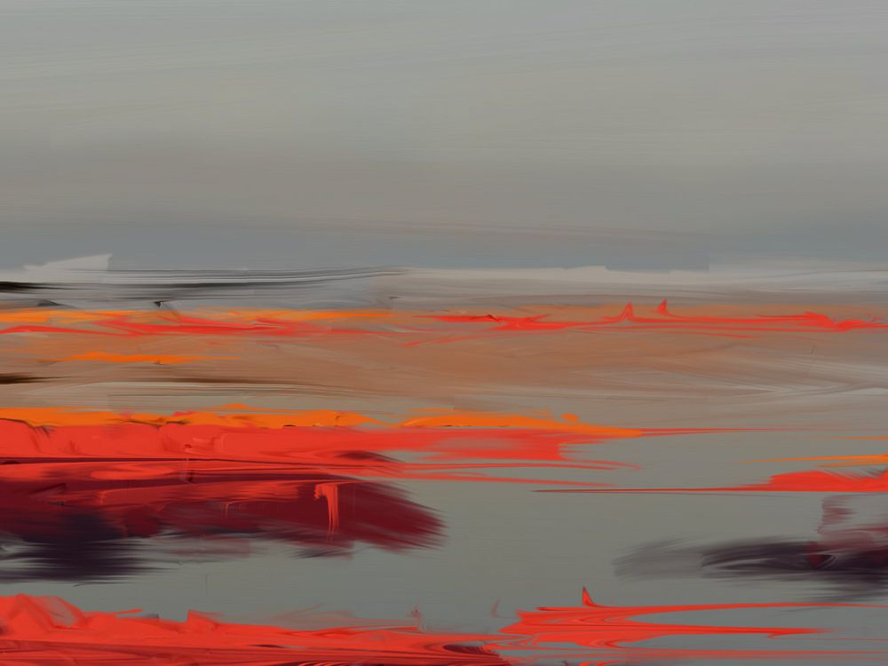 Der Himmel und das Meer sehen sehr ruhig aus, die orangefarbenen Ebenen hingegen sind ein echter Blickfang.