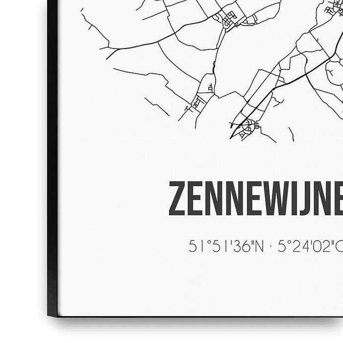 Bestelle dieses abstrakte Wandbild Zennewijnen (Gelderland) | Karte | Schwarz und Weiß von Ortsdrucke als Reproduktion auf Leinwand, Alu-Dibond, als Poster, Fototapete oder Acrylglasbild.