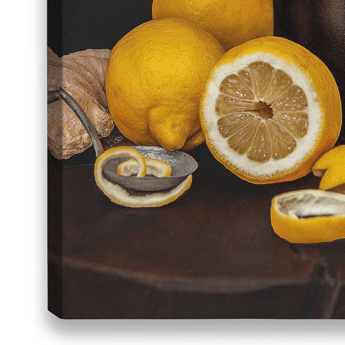 Zitrone, Stilleben, Essen, Zitronenschale, schwarze Vase, Ingwer, Foto, Lebensmittelfotografie, niederländischer Meister, Obst, Obst