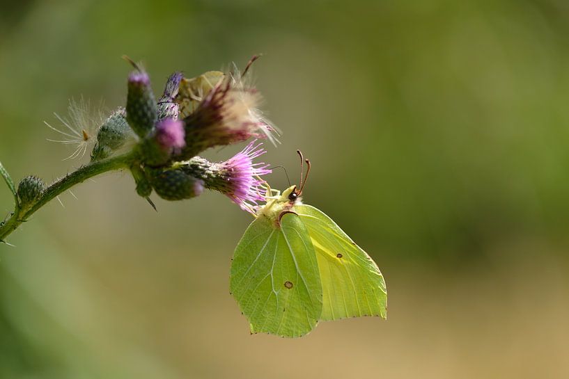 Bestelle dieses Blumen-Wandbild Zitronenfalter von Karin Jähne als Reproduktion auf Leinwand, Alu-Dibond, als Poster, Fototapete oder Acrylglasbild.