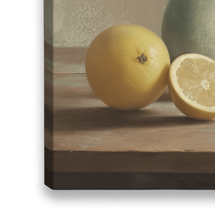 Bestelle dieses Stilleben Zitrusflüstern von Kunst Laune als Reproduktion auf Leinwand, Alu-Dibond, als Poster, Fototapete oder Acrylglasbild.