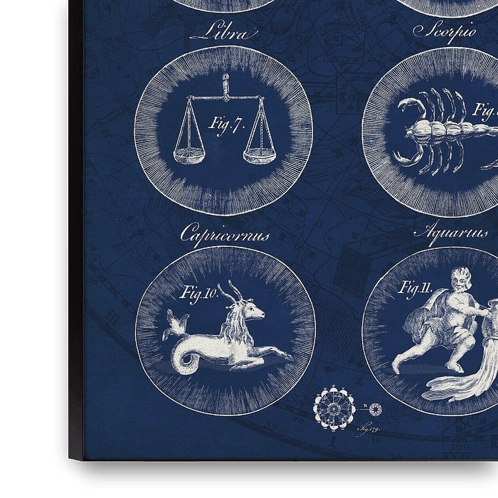 Bestelle diese Illustration Zodiac Blueprint v2., Sue Schlabach aus der Kollektion Wild Apple als Reproduktion auf Leinwand, Alu-Dibond, als Poster, Fototapete oder Acrylglasbild.