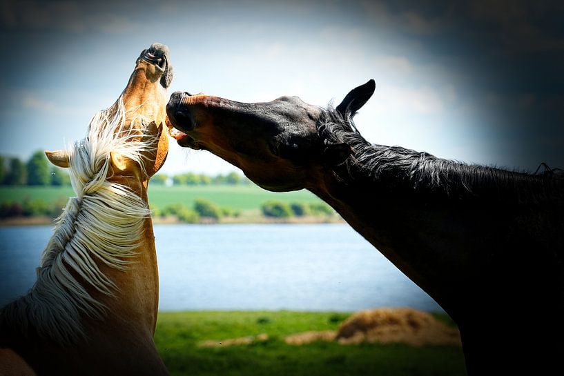 Bestelle das Foto Zoff auf der Weide? Pferdedrama auf Poel? von Jürgen Hüsmert als Reproduktion auf Leinwand, Alu-Dibond, als Poster, Fototapete oder Acrylglasbild.