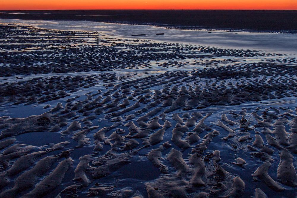 Zonsondergang aan het strand van Oostkapelle tijdens het blauwe uur in de winter