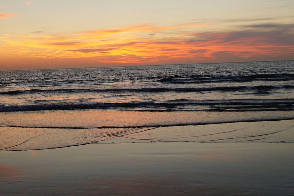 Op een mooie zomeravond genoten van de zonsondergang ,hier is de zon net achter de horizon.