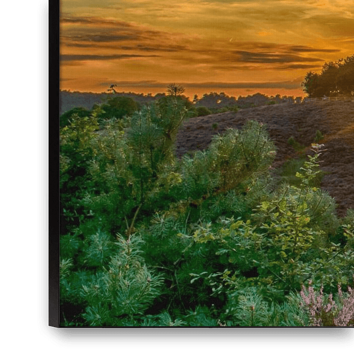 Zonsondergang bij de Posbank terwijl de heide bloeit /