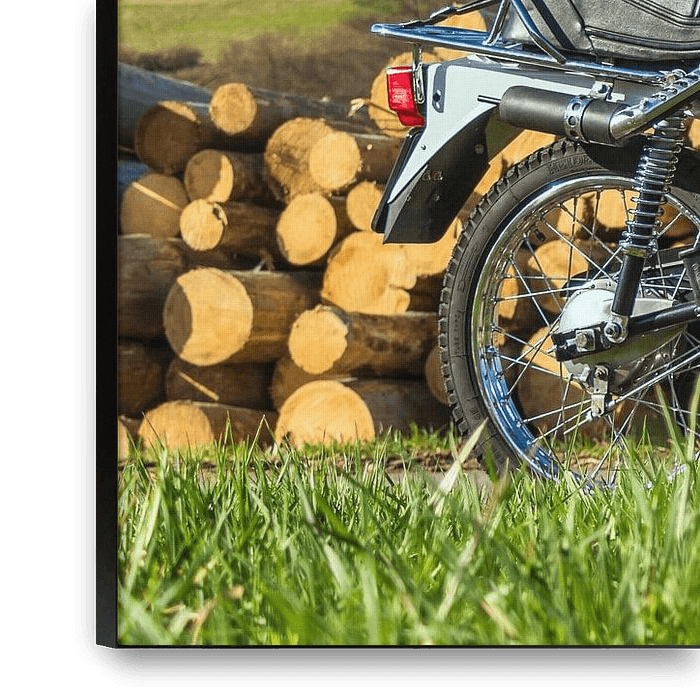 Bestelle das Foto Zündapp Hai 50 vor Holzstapel von Wilde50er als Reproduktion auf Leinwand, Alu-Dibond, als Poster, Fototapete oder Acrylglasbild.
