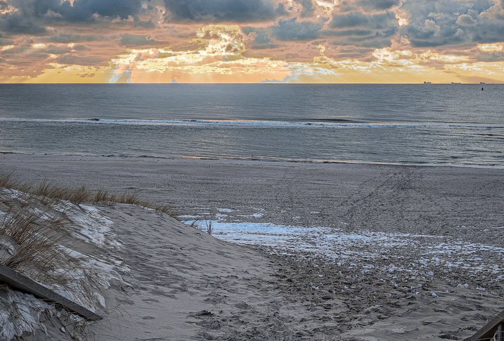 Selbst an einem Wintertag ist es wunderbar, am Strand zu sein. Genießen Sie die Ruhe und die schönen Farben eines Sonnenuntergangs. Hier am Strand der Maasvlakte.