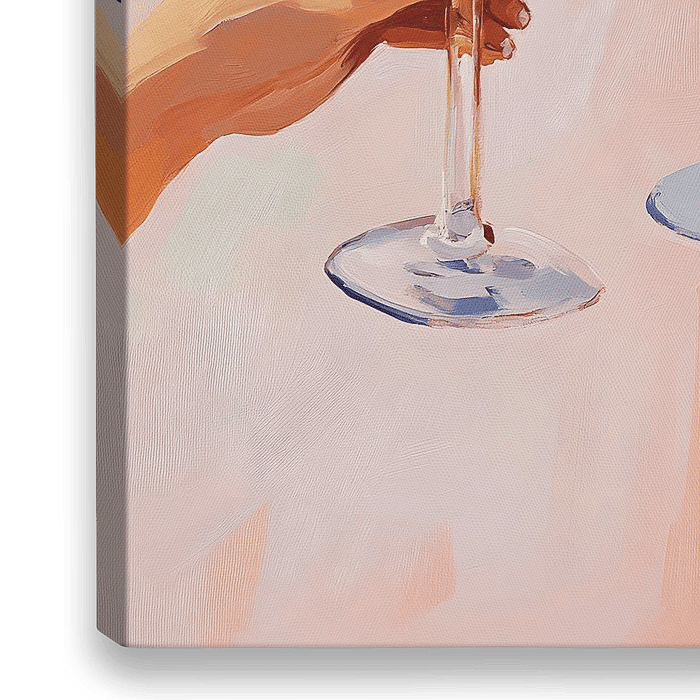 In diesem Kunstwerk wird ein Trinkspruch mit Martinis in einer Mischung aus Pastellfarben und -tönen zum Leben erweckt, die wunderschön ineinander übergehen und eine festliche Atmosphäre hervorrufen.