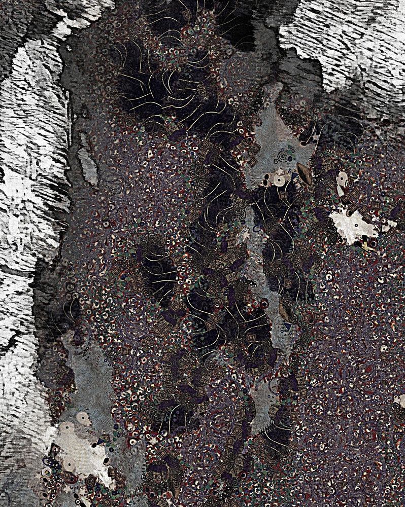 Eine Arbeit in Mischtechnik, die ich In Defence Of Innocence genannt habe. Es deutet den Umriss einer Engelsfigur an, skizzenhaft, aber sichtbar, mit roten und gelben Rändern an den Flügeln und dem Rest der Leinwand. Die Mitte der Leinwand ist schwarz und schmutzig. Es handelt sich um ein Konzeptwerk, das darauf hindeutet, dass der Engel etwas mit seinem Körper beschützt. Wir wissen nicht genau, was sich hinter dem Engel verbirgt, aber er wird um jeden Preis beschützt. Ich habe mich jedoch dafür entschieden, zu vermuten, dass das, was geschützt wird, die Unschuld ist, eine Aussage über den gegenwärtigen Zustand der Welt, in der wir leben.