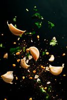 Ein faszinierendes Spiel von Farben und Texturen entfaltet sich in der Luft: Knoblauchzehen, frisches Koriandergrün und goldene Erdnüsse tanzen im freien Fall. Diese dynamische Komposition bringt einen Hauch von Lebhaftigkeit in jede Küche, inspiriert zu neuen Rezepten und kulinarischen Abenteuern. Perfekt für kreative Kochliebhaber und…
