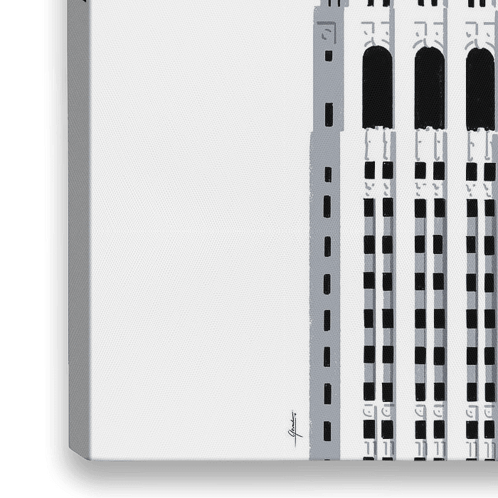 Schwarzweiß-Illustration der Turmspitze des Wolkenkratzers Twenty Exchange Place in New York.