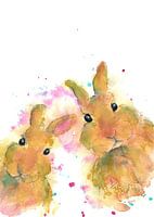 Über „Zwei Häschen Aquarellgemälde“ von Karen Kaspar