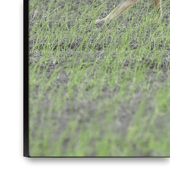 Bestelle das Foto Zwei Hasen auf einem Feld von Henk de Boer als Reproduktion auf Leinwand, Alu-Dibond, als Poster, Fototapete oder Acrylglasbild.