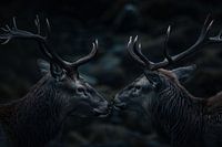 Bestelle das digitale Kunst Bild Zwei Hirsche mit beeindruckendem Geweih von Art & Soul Creations als Reproduktion auf Leinwand, Alu-Dibond, als Poster, Fototapete oder Acrylglasbild.