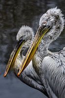 Bestelle dieses Vögel Wandbild Zwei Pelikane mit Teich im Hintergrund von Chi als Reproduktion auf Leinwand, Alu-Dibond, als Poster, Fototapete, ArtFrame oder Acrylglasbild, maßgefertigt in höchster Qualität.