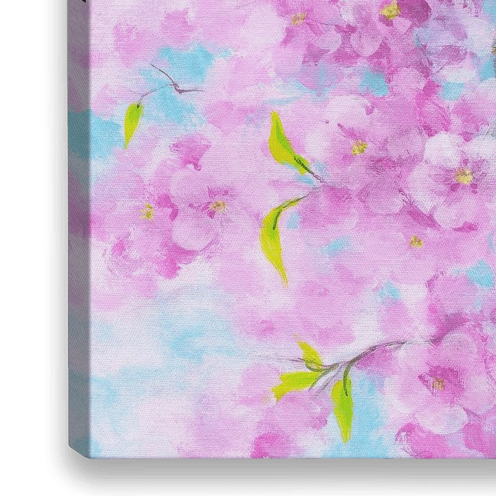 Zwei Spatzen im blühenden Kirschbaum ist ein Acrylgemälde im Querformat handgemalt von der Künstlerin Karen Kaspar.