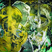 Bestelle dieses abstrakte Wandbild Zwei Violinen und eine Dame im Profil von Helga Blanke als Reproduktion auf Leinwand, Alu-Dibond, als Poster, Fototapete oder Acrylglasbild.
