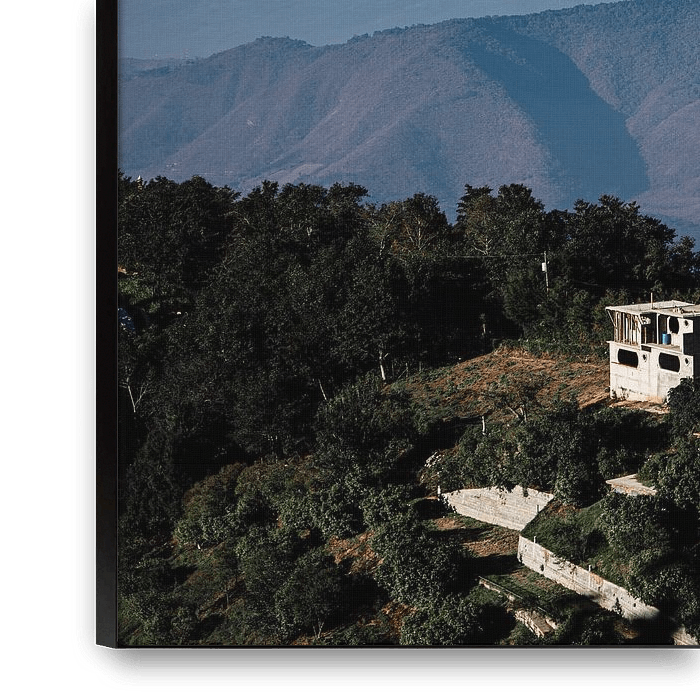 Ihre gewählte Kunst auf Leinwand, gespannt in einem Aluminiumrahmen. Schnell und einfach austauschbar für eine frische Ausstrahlung und ganz nach Ihren Wünschen.
