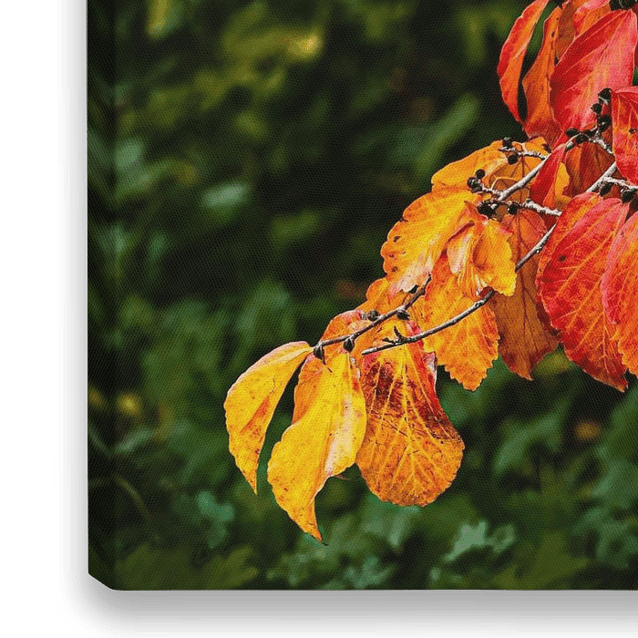 Bestelle dieses Blumen-Wandbild Zweig mit bunten Blättern im Herbst von Dieter Walther als Reproduktion auf Leinwand, Alu-Dibond, als Poster, Fototapete oder Acrylglasbild.